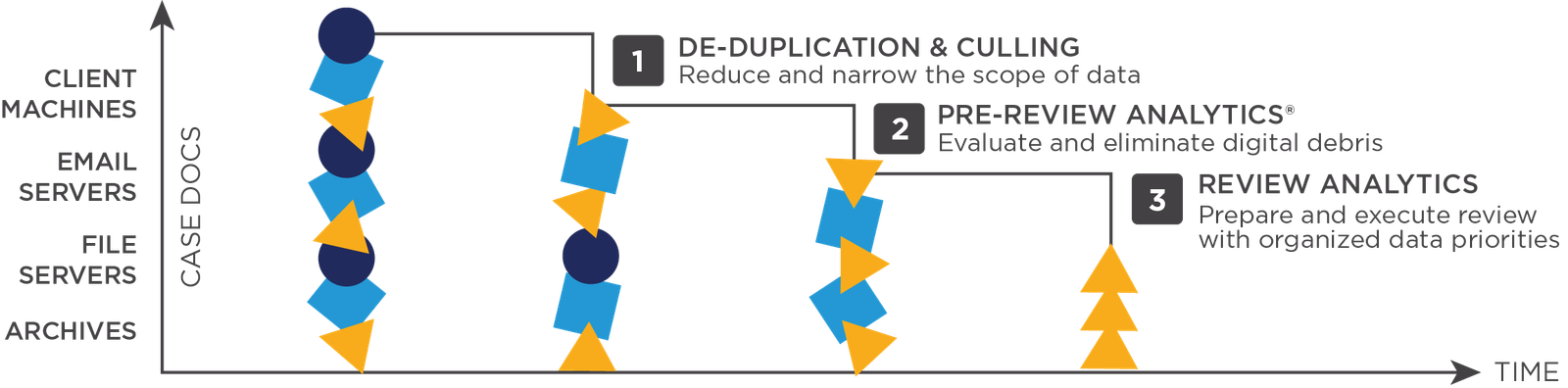 When it comes to managing e-discovery costs, the first cull is one of the most important stages. It affects downstream costs of hosting and document review—and document review can account for up to 73% of total e-discovery costs. With Pre-Review Analytics®, you will significantly decrease your data volume at the onset of your case.